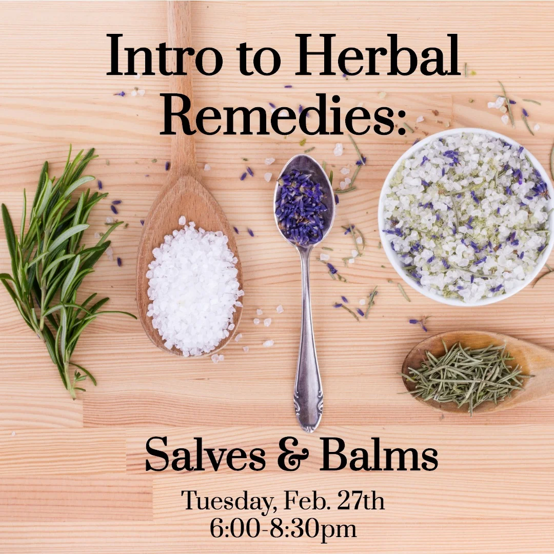 These are one of the simplest to use and most portable herbal remedies. From moisturizing balms to lip balms, we'll learn different techniques of making healing salves and balms, and you'll make one to take home!